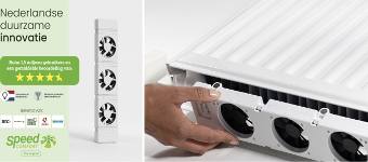 Een SpeedComfort radiatorventilator verspreidt warmte tot 2x zo snel en zorgt voor een gelijkmatigere temperatuur in de kamer. Je kunt de thermostaat 1-2 °C lager zetten en de cv-temperatuur terugbrengen naar 60 °C, met hetzelfde comfort. De ventilatoren verbruiken minder dan 32 cent aan stroom per jaar.